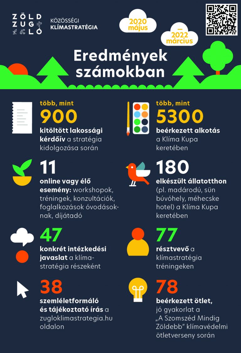 A Polgármesteri Hivatal munkatársait a Klímastratégia mélyebb megismerésében digitális képzési anyag is segítette. Nagy izgalmakat hozott a kerületi óvodások és iskolások ezreinek részvételével megrendezett Zuglói Klíma Kupa, melynek során a gyermekek játékos klímavédelmi kihívásokat oldottak meg, ezzel pontokat gyűjtve saját intézményüknek.